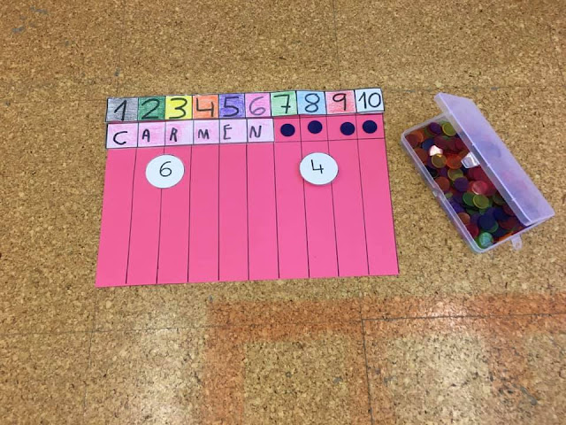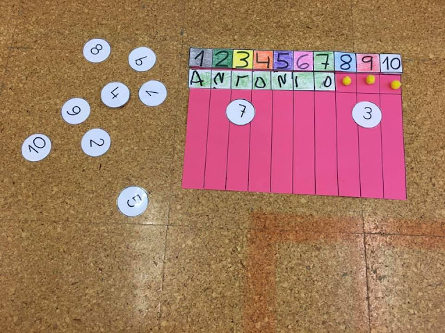Es el que tiene Isabel Ávila con su clase de Infantil de 4 años (CEIP "Vicente Aleixandre", de Montilla, en Córdoba). Juega con los amigos del 10 en el que uno de los amigos es el número de letras que tiene el nombre de cada niño. Hay que ver lo que inventan.