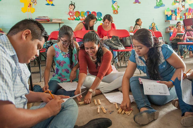 Después de España es México el país que más visitas tiene a este blog. Allí hay actividad ABN y hemos dado cuenta de ello. Hace poco (el 25 de Noviembre) publicamos la noticia de que el profesor Jesús González Molina, de la Escuela Primaria "Vicente Guerrero", de Los Placeres del Oro (Estado de Guerrero) impartía posiblemente el primer curso de formación en ABN en ese país. Pues nos han llegado fotos, y algunas de ellas no me resisto a publicarlas y a hacerles un pequeñísimo comentario.